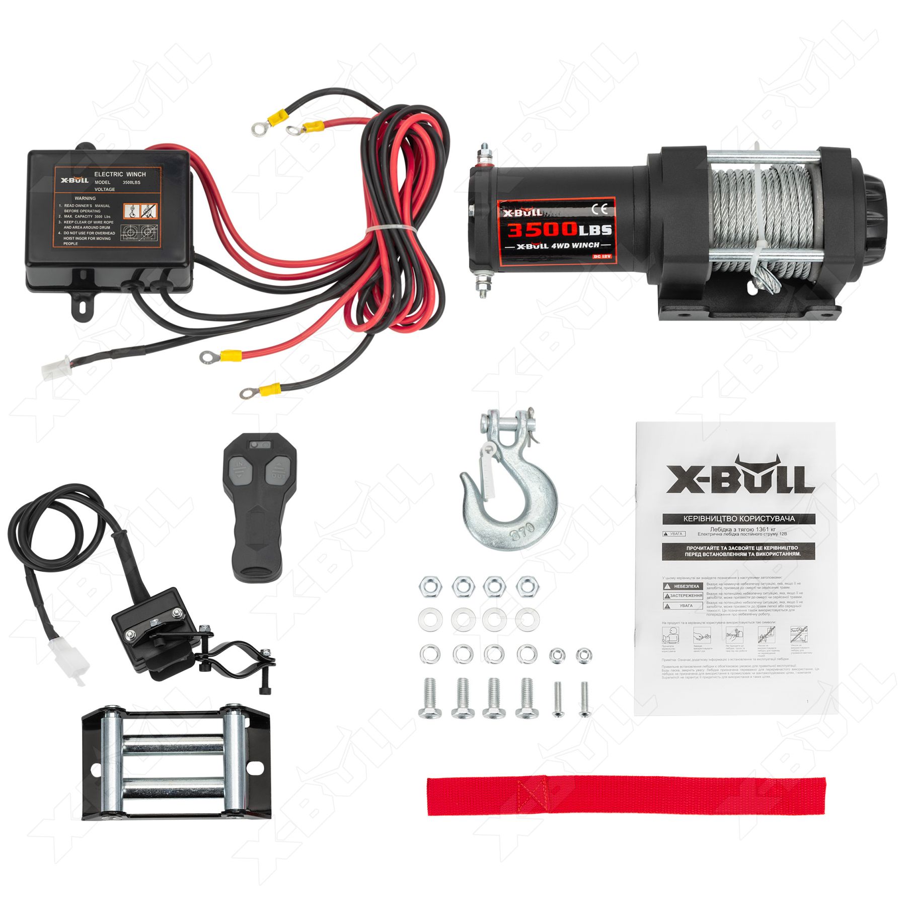 ATV (UTV) електрична лебідка X-BULL 3500 LBS зі сталевим тросом (HRW3500A)